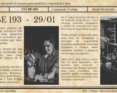Receitas Dourado, drinque do bartender Heitor Marin Maria Gomes de Oliveira, drinque do bartender Eduardo Amorim Chaplin, drinque da bartender Talita Simões Oxente Arriba, o drinque da bartender paraibana Carla Medeiros Hasta Luego, drinque do bartender Mauro Luka Silva